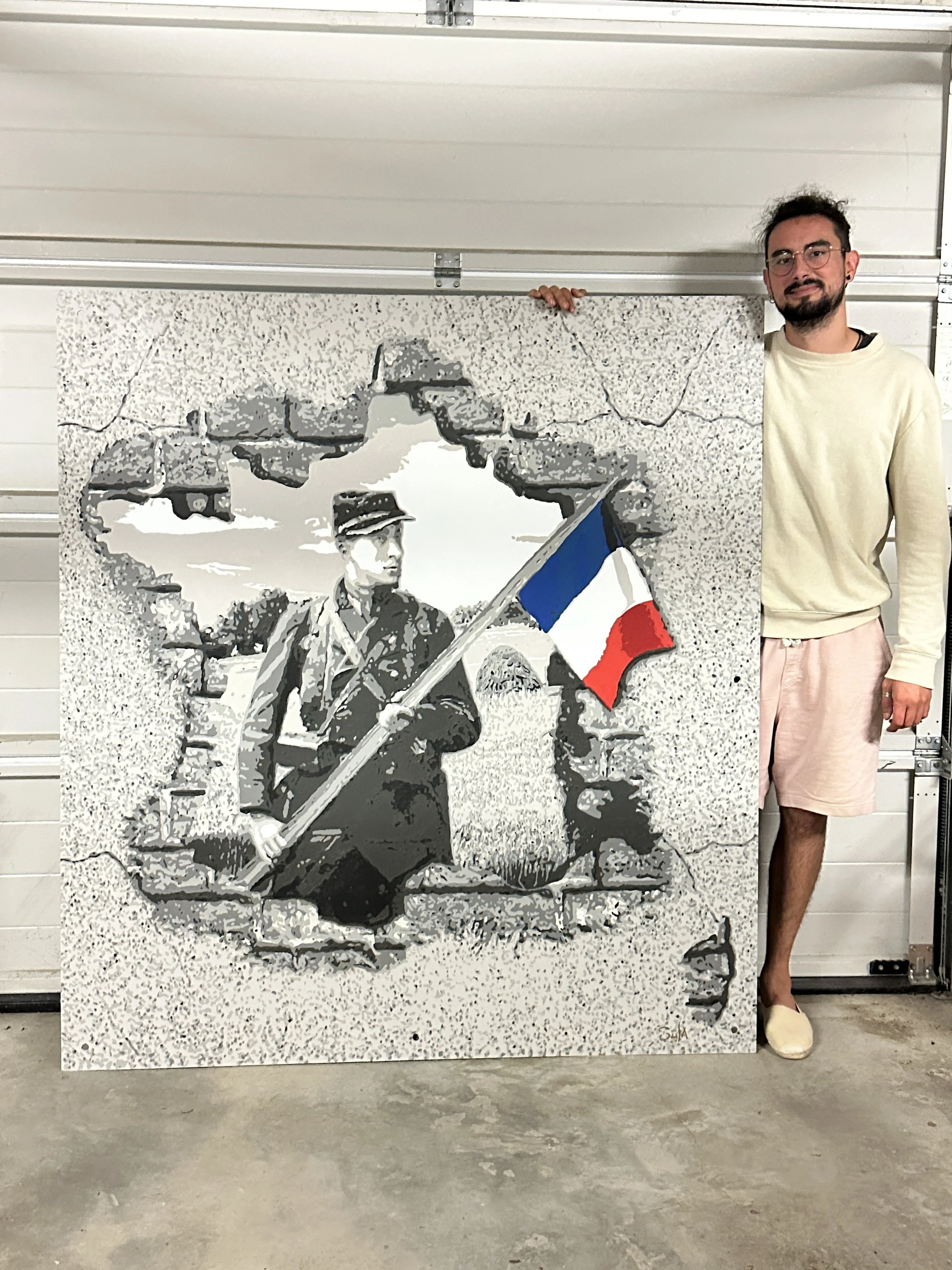 Par cette fresque, j’ai souhaité créer un pont entre le passé et le présent, une invitation à se souvenir et à honorer ceux qui ont œuvré pour la paix et la liberté.