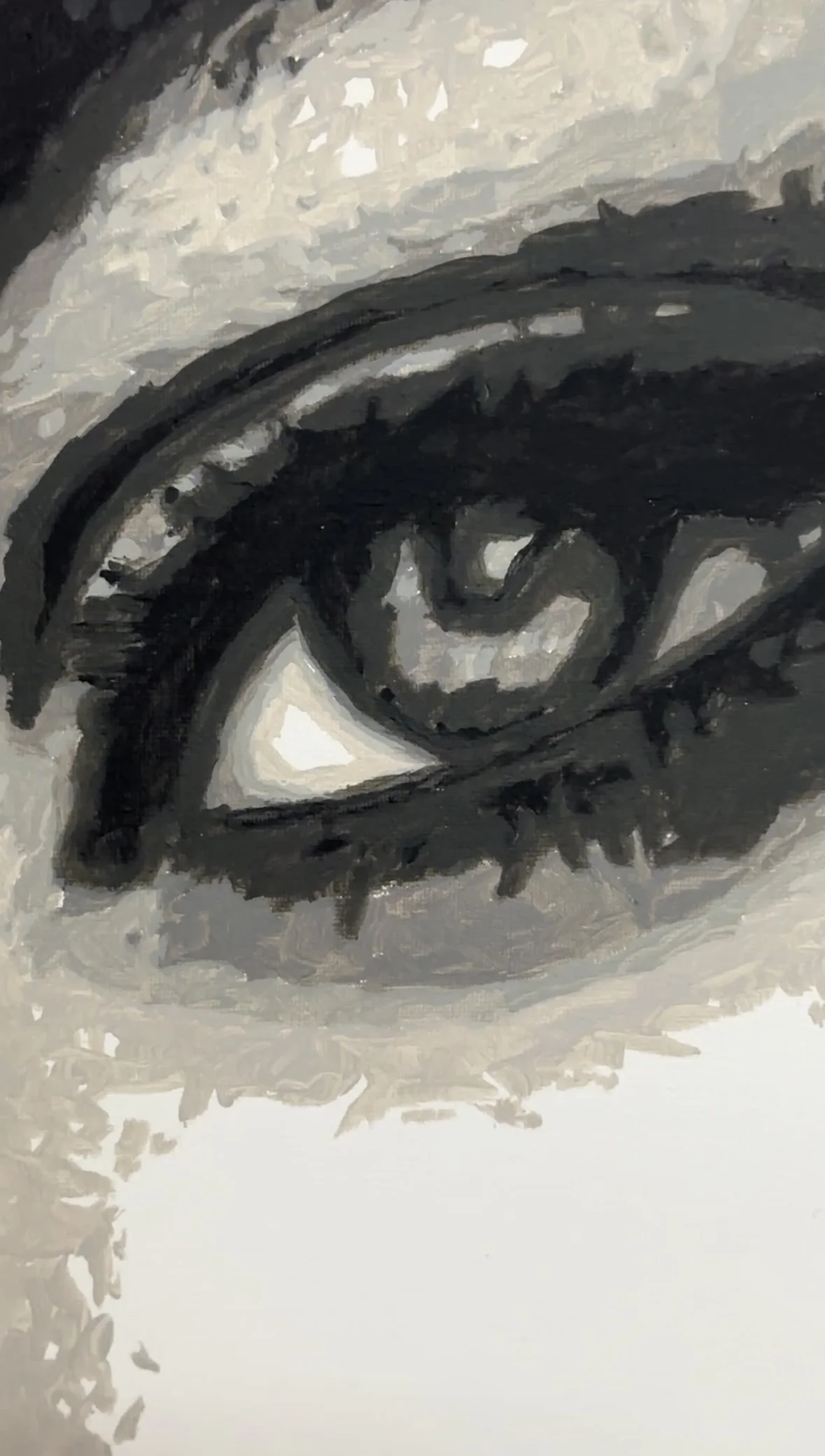 Cette œuvre parle de la force intérieure qui émane de chaque être humain. À travers ce regard intense et pénétrant, j’ai voulu capturer l’énergie brute et la puissance qui résident dans l’âme. Les traits du visage, à la fois précis et fragmentés, sont un écho de cette vitalité intérieure qui dépasse les mots et les apparences.