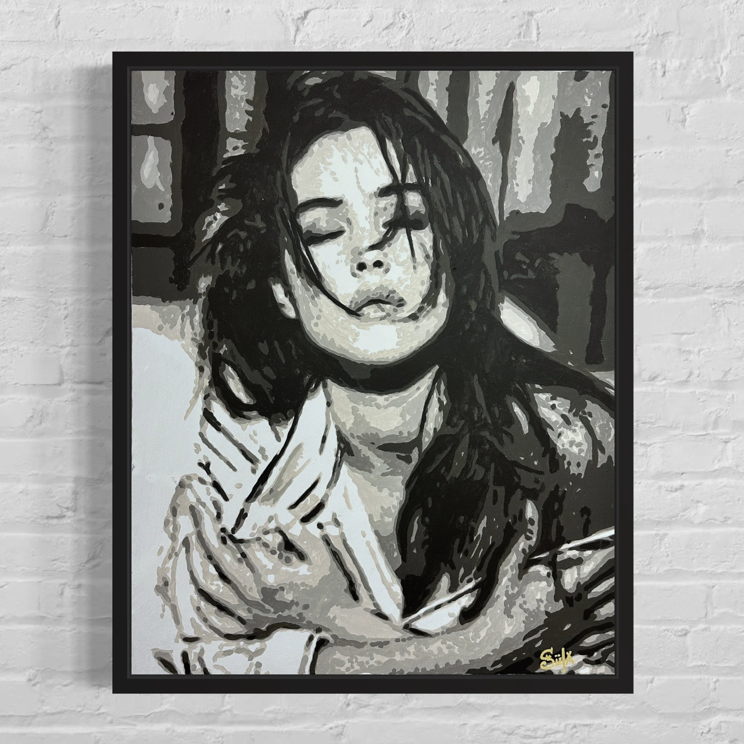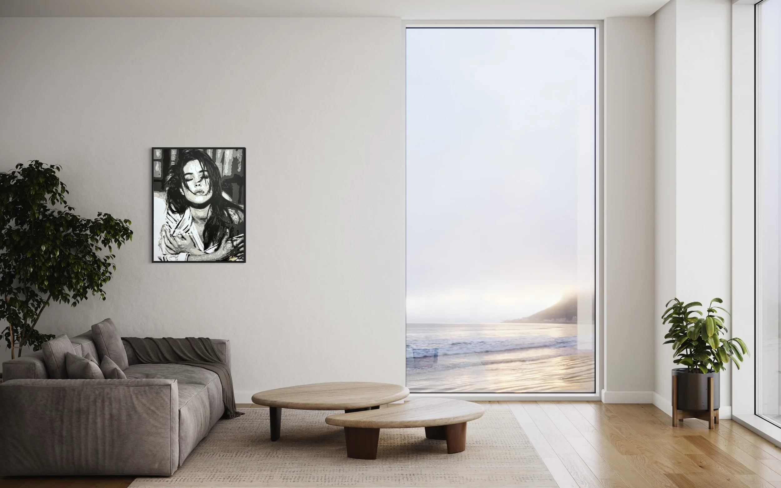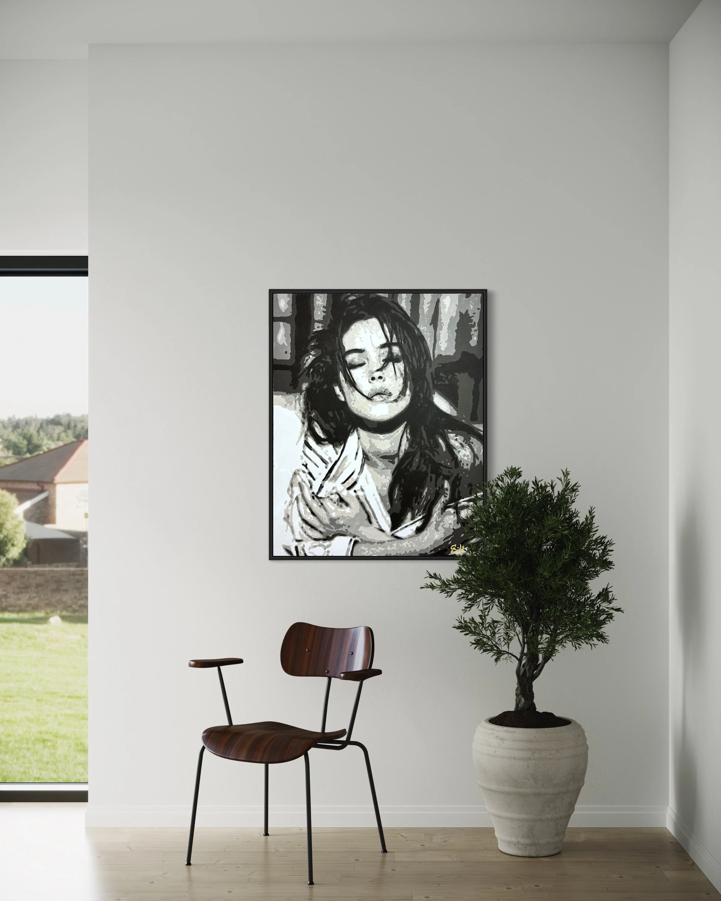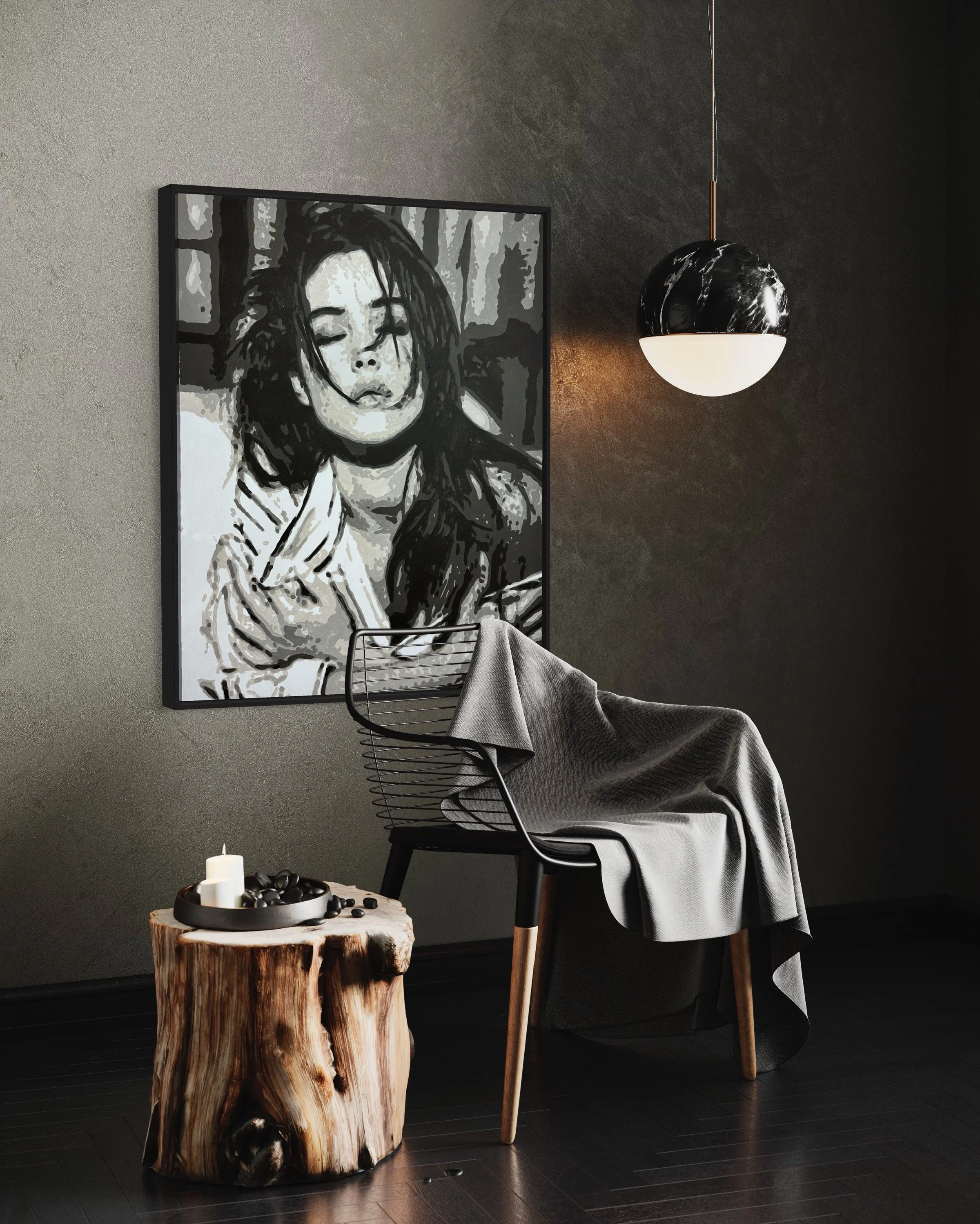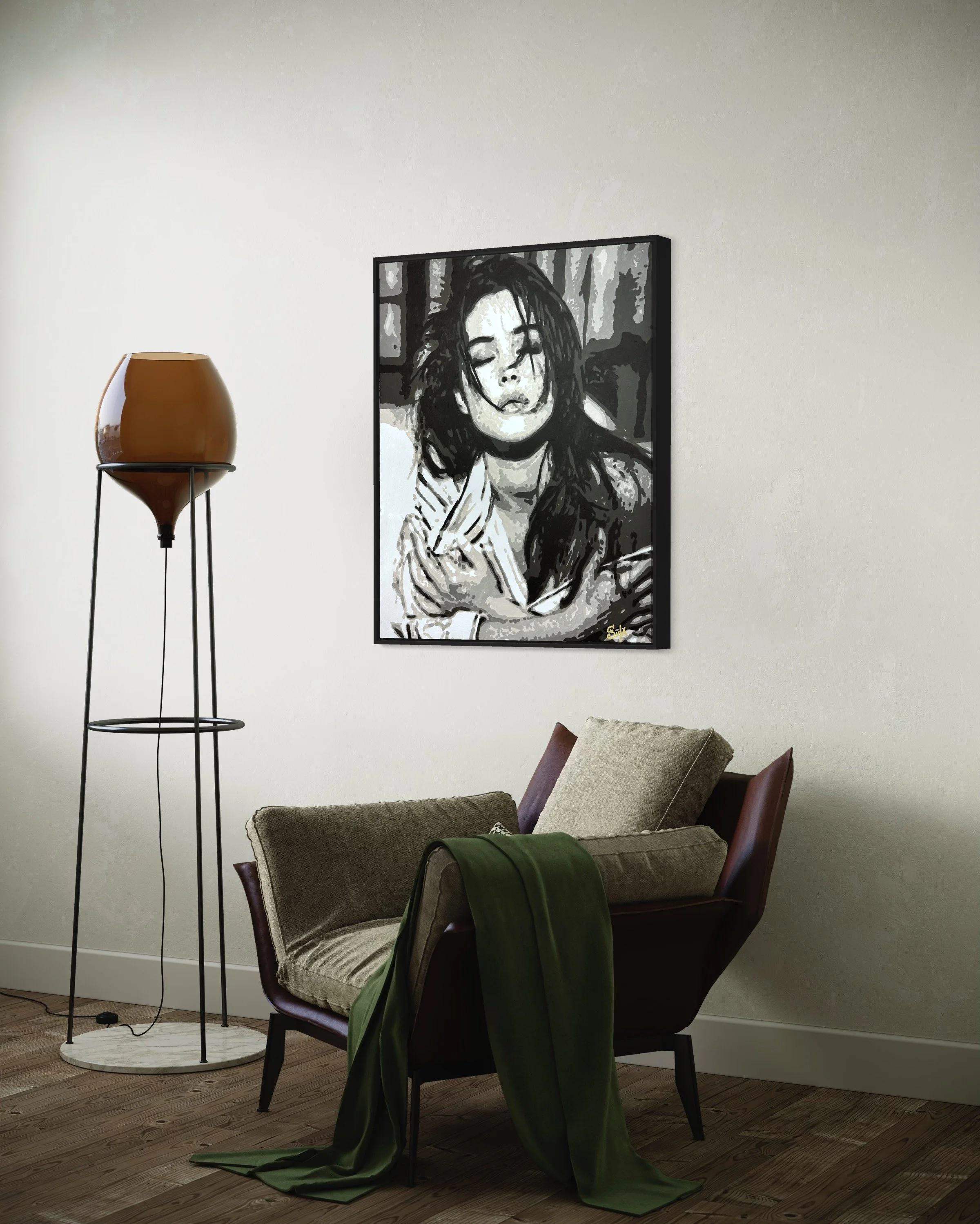 Dans un jeu d’ombres et de lumières, “Monica” capture l’essence même de la sensualité et de l’introspection. Inspiré par l’aura magnétique de Monica Bellucci, ce portrait saisit un instant suspendu, où le regard clos et l’expression à la fois douce et intense traduisent une émotion profonde.