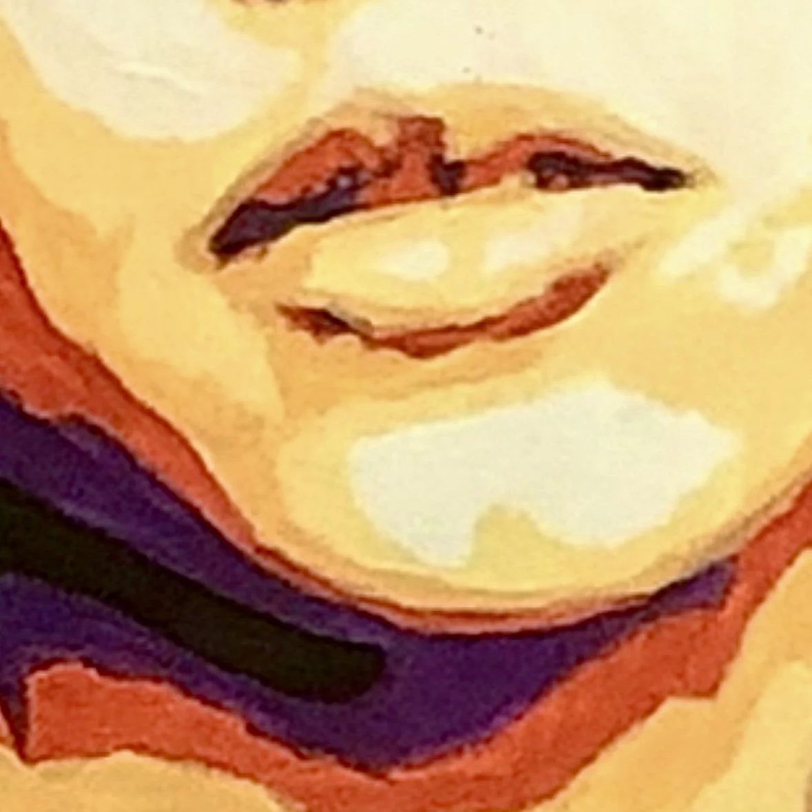 Le contraste entre le réalisme du portrait et la gestuelle libre des touches de peinture qui l’entourent crée un dialogue entre maîtrise et spontanéité. Ce flou autour d’elle, ces éclats de matière brute, traduisent l’idée d’une identité en perpétuelle évolution. Jenna, tout comme son regard, oscille entre douceur et rébellion, délicatesse et affirmation.