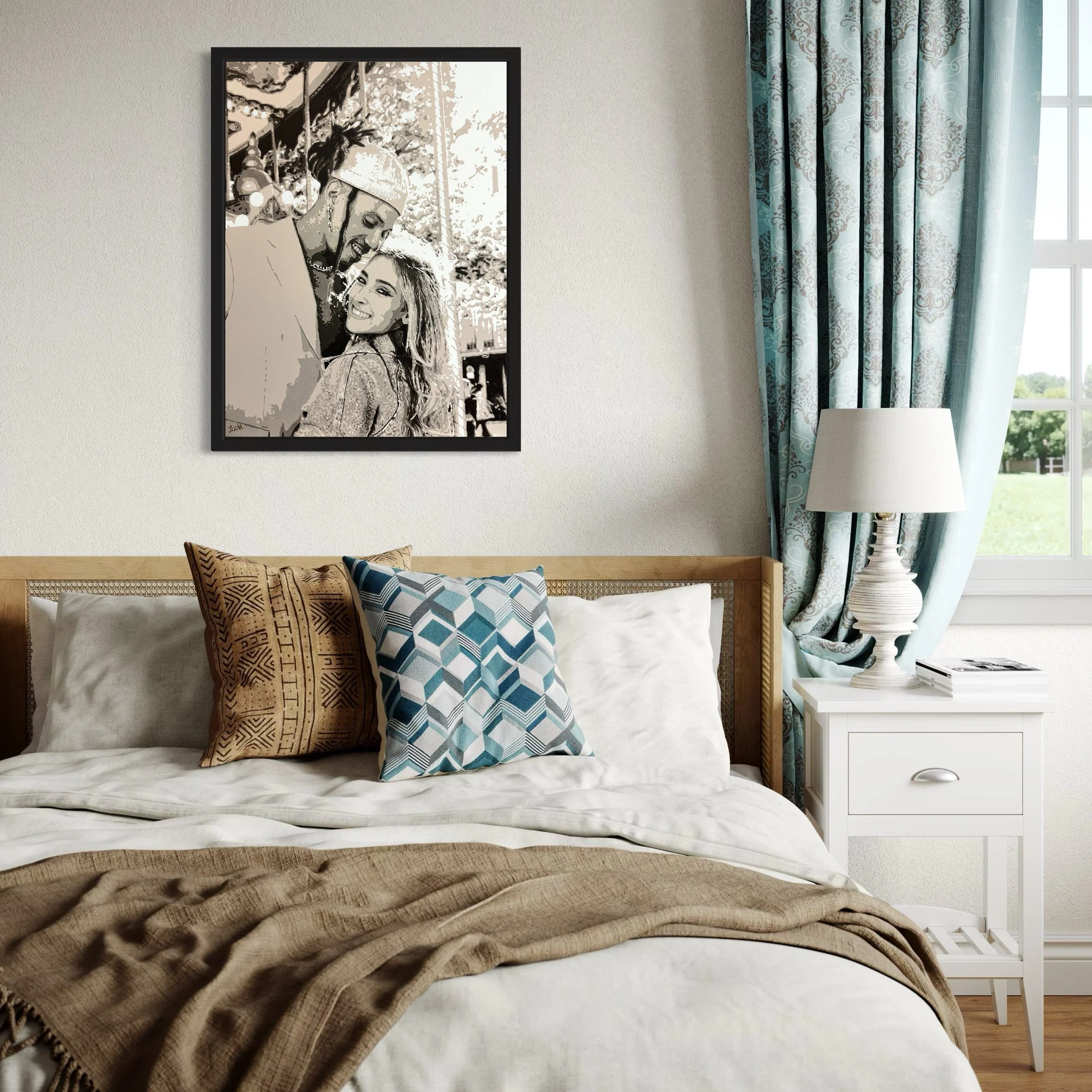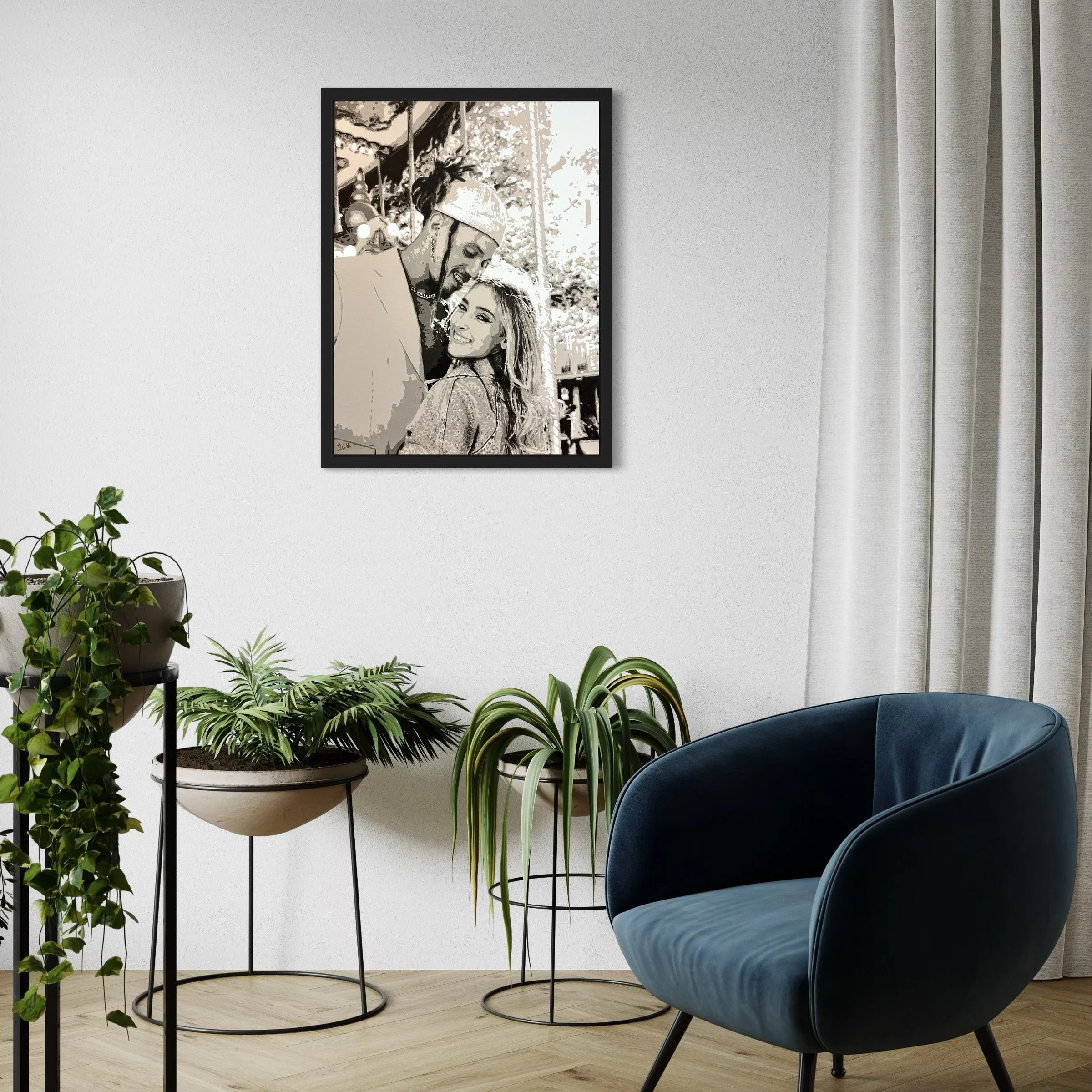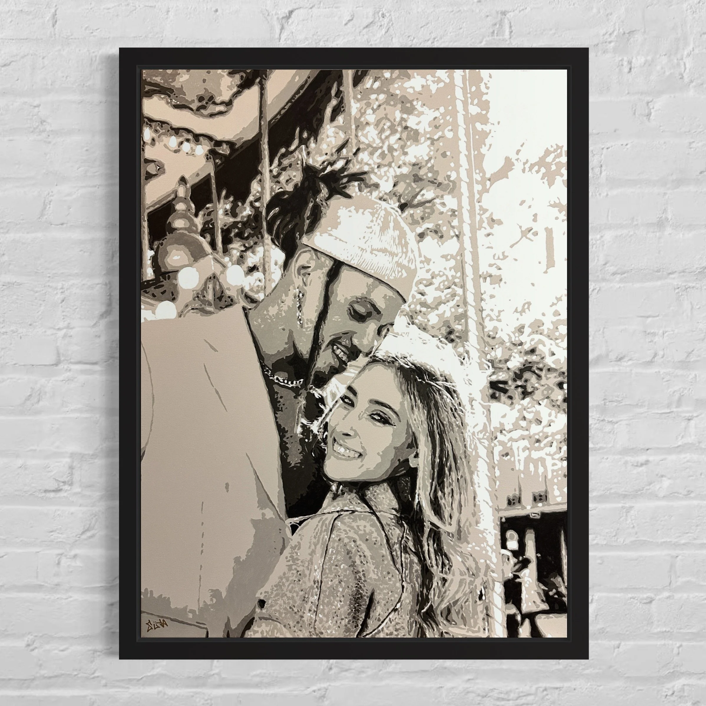 Figer un instant d’amour, capturer cette étincelle de complicité qui unit deux âmes—c’est ce que j’ai cherché à retranscrire à travers cette œuvre. “Les Amoureux” est une commande personnalisée, une invitation à immortaliser un moment de bonheur suspendu, où le temps semble s’effacer pour ne laisser place qu’à l’intensité d’un regard, d’un sourire partagé.
