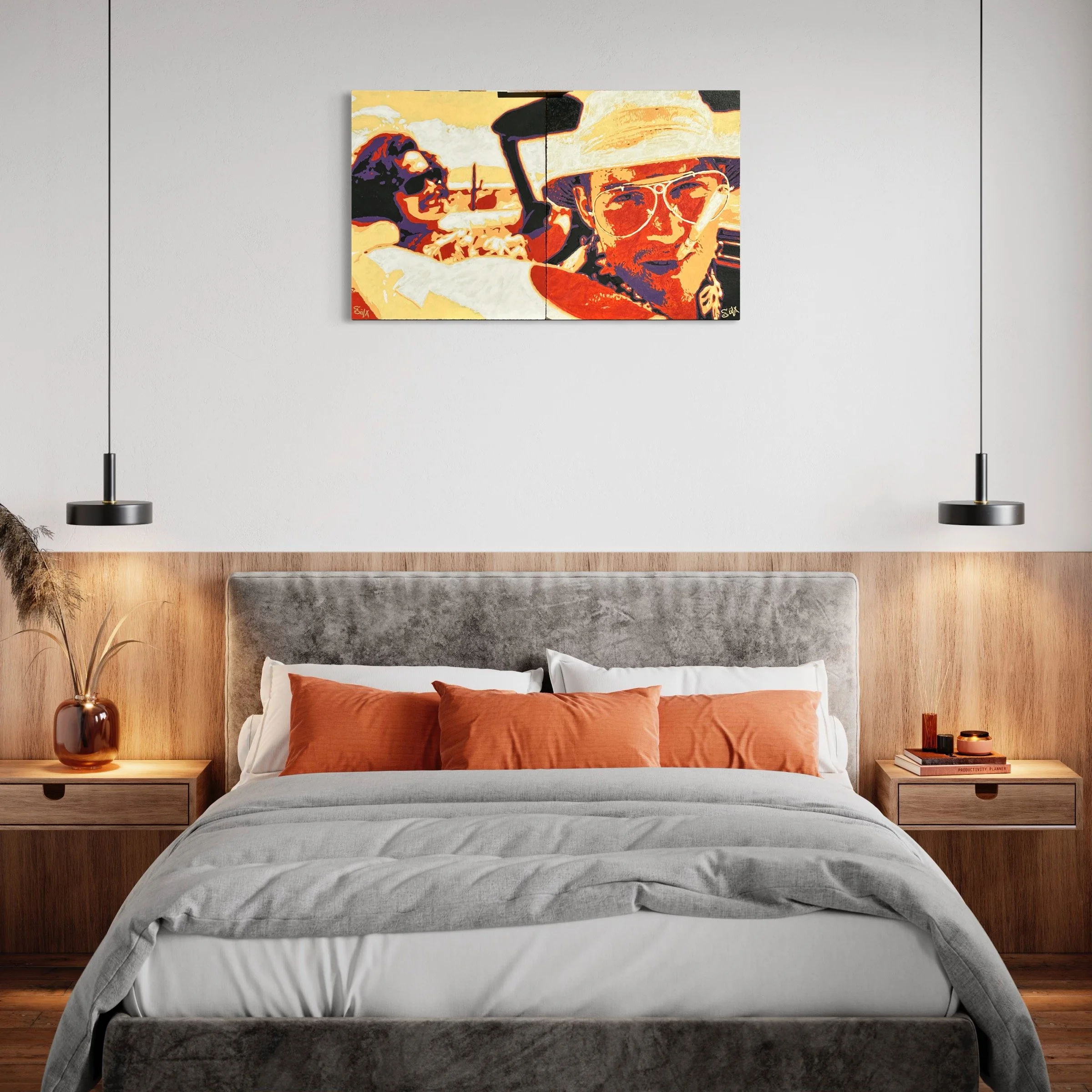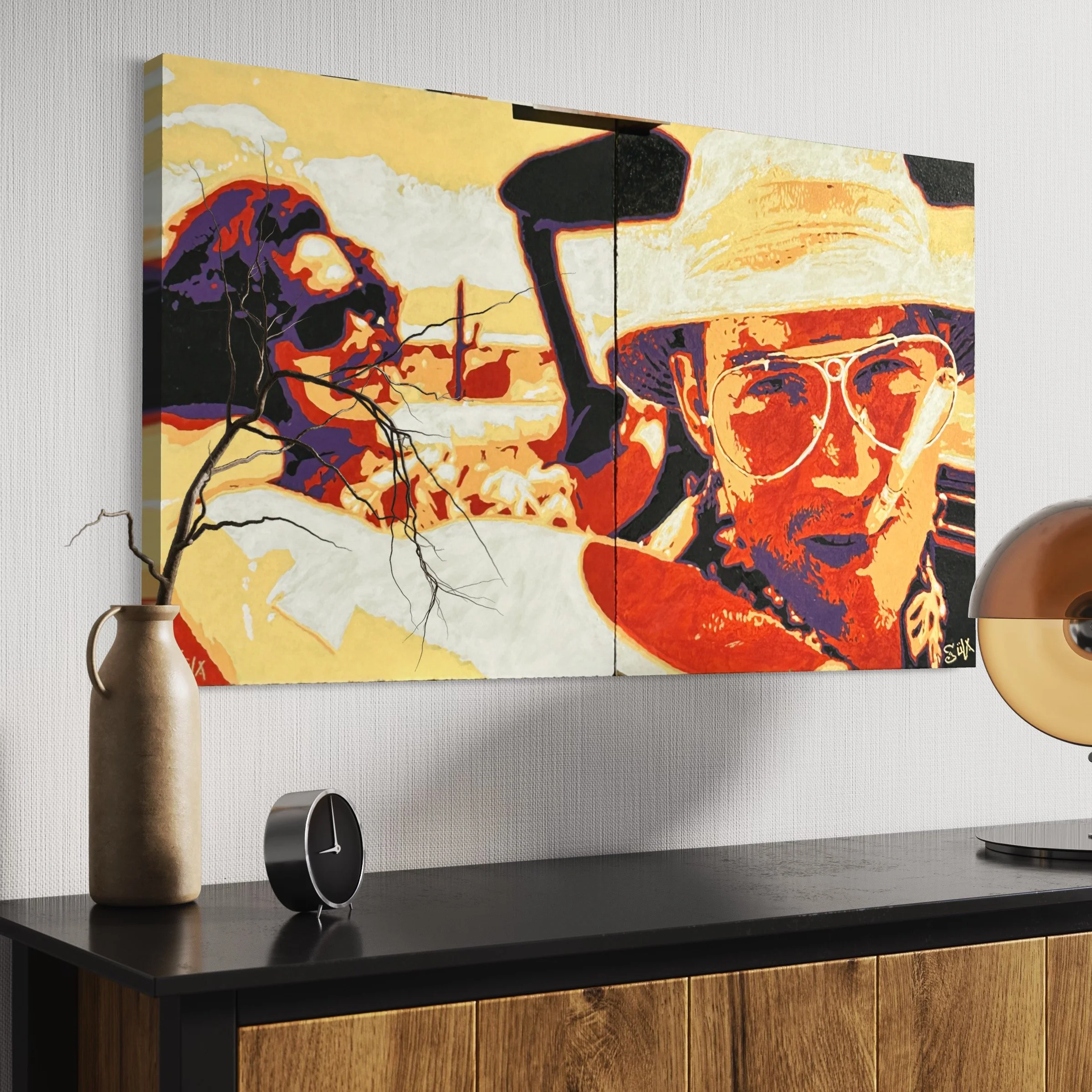Cette œuvre capture l’énergie brute et enivrante d’un voyage à travers les vastes étendues désertiques, où le réel et l’imaginaire s’entrelacent. Inspirée du film Las Vegas Parano, elle retranscrit ce sentiment de liberté totale, d’abandon aux forces du destin et aux expériences sensorielles.